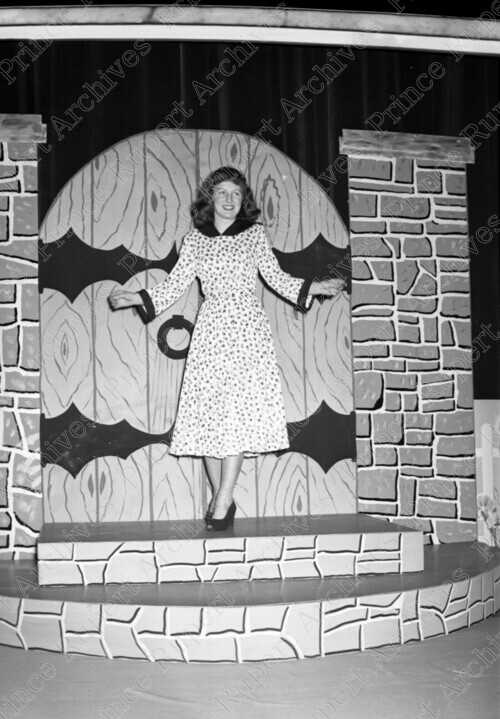 Scope & Content: Item consists of Lorraine Youngman models a dress in Annette's Fashion Show on stage at the Capitol Theatre. Handwritten annotation on recto of copy 2 reads: "Annette's Fashion Show. Capitol Theatre. 1948." Stamped annotation on verso of copy 2 reads: "Photo by Jack Wrathall Prince Rupert, B. C."