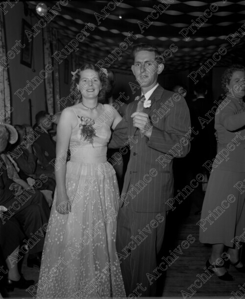 Scope & Content: Gwen Eby and Bob Eby stand together for a photograph at the wedding of Jack and Edith Eby (nee Jordon). Handwritten annotation on recto of copy 2 reads: "Gwen Eby Bob Eby. At Mr & Mrs. Eby's Wedding." Stamped annotation on verso of copy 2 reads: "Photo by Jack Wrathall Prince Rupert, B. C."