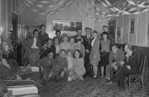 Scope & Content: Item consists of a large group of male and female guests at the wedding of Mr. and Mrs. Eric Linney in 1945. Handwritten annotation on recto of copies 2 and 3 reads: "Mr. & Mrs. Eric Linney's Wedding. 1945." Stamped annotation on verso of copies 2 and 3 reads: "Photo by Jack Wrathall Prince Rupert, B. C."