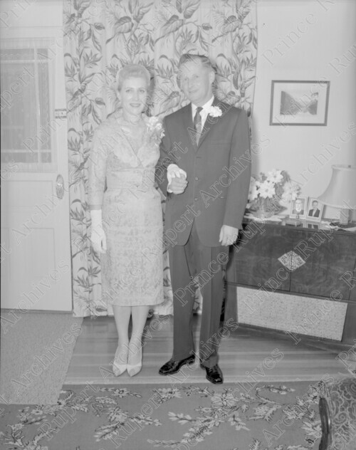 Scope & Content: Item consists of Mary Bremner and John Rasmussen standing together on their wedding day. Handwritten annotation on recto of copy 2 reads: "Mary Bremner. Mr. & Mrs Rasmussen. Wedding. Aug. 24 - 1963." Stamped annotation on verso of copy 2 reads: "Photo by Jack Wrathall Prince Rupert, B. C."