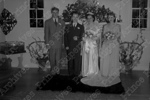 Scope & Content: Item consists of Jack and Dorothy Eastwood (nee McLeod) standing in the middle of Archie McLeod on their left and another woman on their right on Jack and Dorothy's wedding day. Handwritten annotation on verso of copy 2 reads: "Eastwood - 19. Photo by Jack Wrathall Prince Rupert, B. C."
