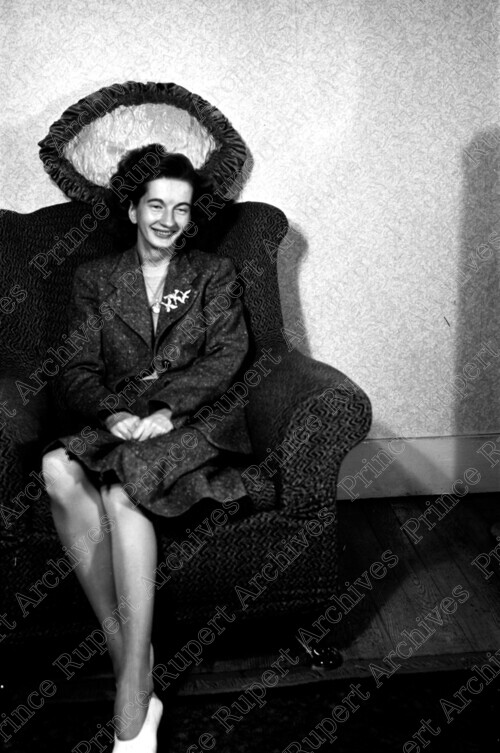 Scope & Content: Item consists of Irene Giske sitting in an armchair and posing for a photograph at a home in the 200 block of 8th Avenue West. Handwritten annotation on recto of copy 2 reads: "200 Blk. 8th. Ave. W. 1941."