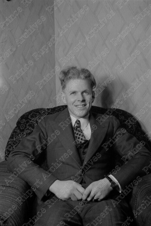 Scope & Content: Item consists of Ray Fossum posing for a photograph at an unknown location. Handwritten annotation on recto of copy 2 reads: "Ray Fossum. 1944." Stamped annotation on verso of copy 2 reads: "Photo by Jack Wrathall Prince Rupert, B. C."