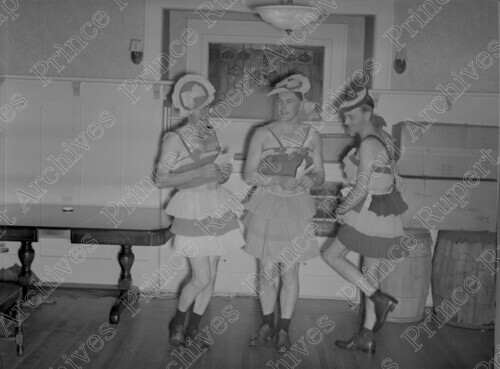 Scope & Content: Item consists of three men all dressed in women's clothing giving a speech at a farewell party for Mr. and Mrs. Gordon and Cleo (nee Mussallem) Bryant.