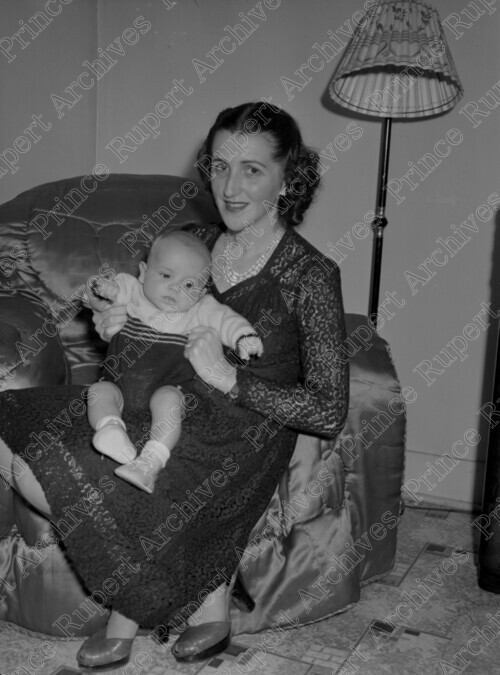 Title: Mrs. Irene Burn and Baby at Prince Rupert, B.C. on December 1, 1947