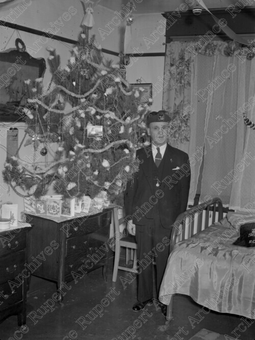 Scope & Content: Item consists of Mr. G. Royer wearing a Moose Lodge uniform and standing next to a Christmas tree in the Moose Lodge. Handwritten annotation on recto of copy 2 reads: "Mr. G. Royer. Moose Lodge. June 17. 1948." Stamped annotation on verso of copy 2 reads: "Photo by Jack Wrathall Prince Rupert, B. C."