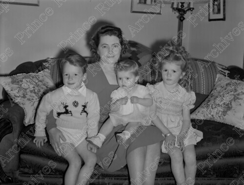 Scope & Content: Item consists of Inga Giske and her grandchildren sitting on a couch, from left to right is Peter Wallin (Husoy), Inga Giske, Baby Sherry Husoy and Sharon Husoy. Handwritten annotation on recto of copy 2 reads: "Mrs. Giski [sic] & Grand Children. May - 1948." Stamped annotation on verso of copy 2 reads: "Photo by Jack Wrathall Prince Rupert, B. C."
