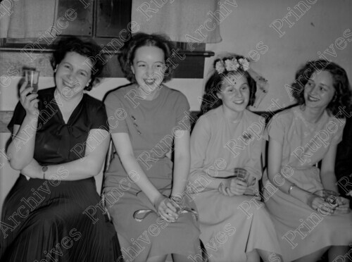 Scope & Content: Item consists of Jessie Boulter, Marie Boulter, an unknown woman and Solveig Mark sitting together and all holding drinks. Handwritten annotation on recto of copy 2 reads: "Jesse - Mrs. Tommy Boulter. Daughter Marie. Mar. 19 - 1948." Stamped annotation on verso of copy 2 reads: "Photo by Jack Wrathall Prince Rupert, B. C."