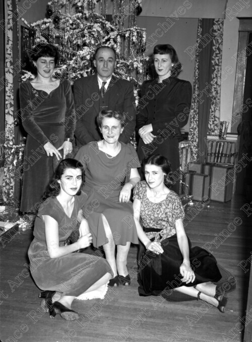 Scope & Content: Item consists of Louise and Charlie Balagno posing for a photograph with their four daughters on January 7, 1948. In the middle is Mrs. Louise Balagno and Mr. Charlie Balagno, to their left in the front is daughter Dellie, to their left in the back is daughter Charlotte, to their right in the front is daughter Marie and to their right in the back is daughter Helen. Handwritten annotation on recto of copy 3 reads: "Bot. 1. Delie [sic]. 2. Marie. Top. 3. Charlotte. 4 Helen. Mr. & Mrs. Charley Balagno. Jan. 7 - 1948." Stamped annotation on verso of copy 3 reads: "Photo by Jack Wrathall Prince Rupert, B. C."