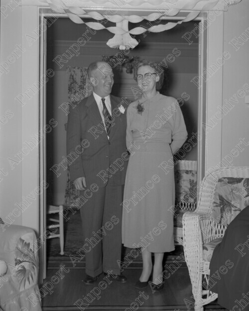 Scope & Content: Item consists of Mr. and Mrs. Ken Laird standing in a doorway together on their anniversary on October 29, 1954.