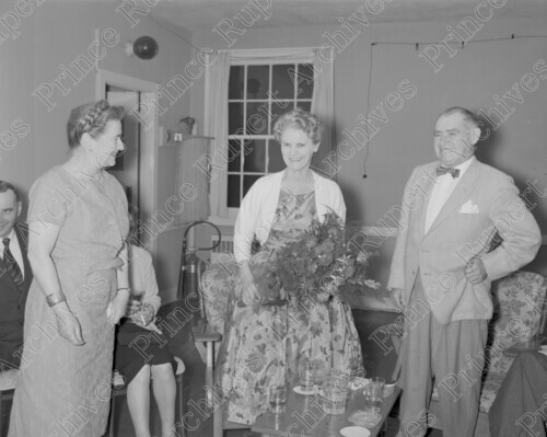 Scope & Content: Item consists of two women and a man at the farewell party for Mr. and Mrs. Webster at the Royal Canadian Legion. Handwritten annotation on recto of copy 2 reads: "Fairwell Party for Mr. & Mrs. Webster. May. 9 - 1959."