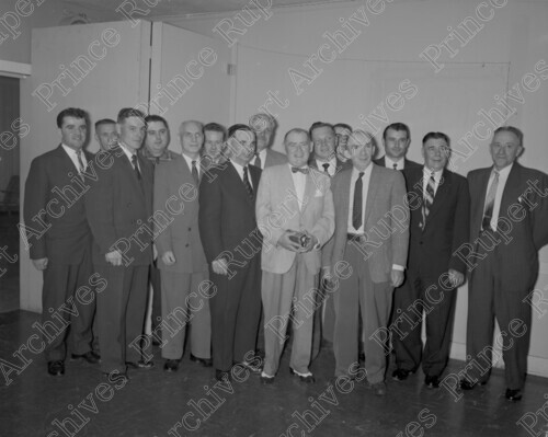 Scope & Content: Item consists of a group of men standing together at the farewell party for Mr. and Mrs. Webster at the Royal Canadian Legion on May 9, 1959.