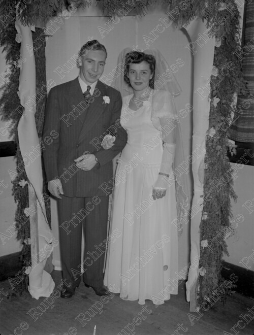 Scope & Content: Item consists of Mr. and Mrs. Leland posing for a photograph on their wedding day. Handwritten annotation on recto of copy 3 reads: "Mr. & Mrs. Leland. Wedding Dec. 9 - 1946." Stamped annotation on verso of copy 3 reads: "Photo by Jack Wrathall Prince Rupert, B. C."