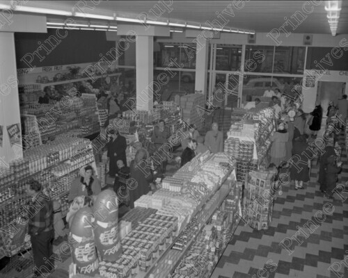 Scope & Content: Item consists of the opening day of Sheardown's Grocery at 316 3rd Avenue West in 1952, showing the interior of the store and people shopping.