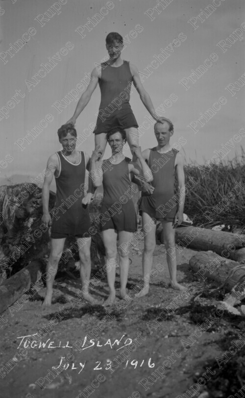 Title: Tugwell Island : July 23, 1916 : Price, Rourke, Presley and W.W. Wrathall Having Fun