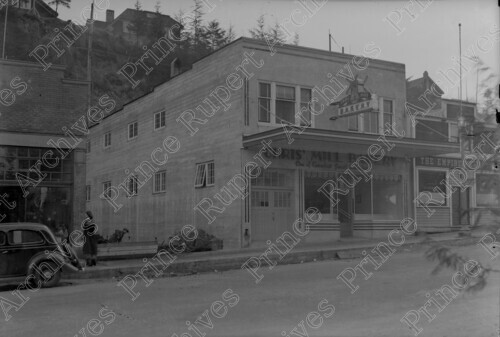 Scope & Content: Item consists of the exterior of the Chris' Mill Bakery at 337 3rd Avenue West in Prince Rupert BC in 1935. The Evening Empire newspaper office can be seen on the right. Handwritten annotation on recto of copy 2 reads: "Chris Mill Bakery. Mr. Christianson. 1935. 337 - 3rd. Ave. W." Stamped annotation on verso reads: "Photo by Jack Wrathall Prince Rupert, B. C."
