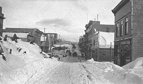 Title: 3rd Avenue West from 7th Street, Royal Hotel & Helgerson Block at Prince Rupert, B.C.