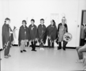 Title: Group of Indigenous Performers in 1954 Part of: Wrathall Photo Finishing Ltd. fonds Level: Item Date: 1954 Physical Description: ["1 acetate negative : b&w ; 9.5 x 12 cm (referred to as copy 1)", "1 photograph : b&w ; 21 x 26 cm (referred to as copy 2)"] Description: Item consists of a group of five Indigenous dancers and an Indigenous drummer preparing to perform at an unknown location. A young girl can be seen peeking through a doorway on the right. Handwritten annotation on recto of copy 2 reads: "1954." Stamped annotation on verso of copy 2 reads: "Photo by » View details and larger image |