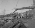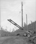 Title: Kelly Logging Co. at Juskatla on Haida Gwaii, B.C. in 1950 Part of: Wrathall Photo Finishing Ltd. fonds Level: Item Date: 1950 Physical Description: ["1 nitrate negative : b&w ; 12 x 9.5 cm (referred to as copy 1)", "1 photograph : b&w ; 26 x 21 cm (referred to as copy 2)", "1 photograph : b&w ; 26 x 21 cm (referred to as copy 3)"] Description: Item consists of Kelly Logging Co. operations including a crane at Juskatla on Haida Gwaii. Handwritten annotation on recto of copies 2 and 3 reads: "Kelly Logging Co. Juskatla. Q. Ch. Isl. 1950." Stamped annotation on verso of copies 2 and 3 reads: "Photo by Jack Wrathall Prince Rupert, B. C." View details and larger image |