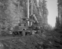 Title: Truck Ready to Dump a Load at Kelly Logging Co. at Juskatla on Haida Gwaii, B.C. in 1950 Part of: Wrathall Photo Finishing Ltd. fonds Level: Item Date: 1950 Physical Description: ["1 nitrate negative : b&w ; 9.5 x 12 cm (referred to as copy 1)", "1 photograph : b&w ; 21 x 26 cm (referred to as copy 2)"] Description: Item consists of an employee standing beside a Kelly Logging Co. truck ready to dump its load at Juskatla on Haida Gwaii. Handwritten annotation on recto of copy 2 reads: "Ready to Dump a Load. Kelly Logging. Co. Juskatla. Q. Ch. Isl. 1950." Stamped annotation on verso of copy 2 reads: "Photo by » View details |