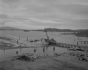 Title: Kelly Logging Co. Dumping Logs at Juskatla on Haida Gwaii, B.C. in 1950 Part of: Wrathall Photo Finishing Ltd. fonds Level: Item Date: 1950 Physical Description: ["1 nitrate negative : b&w ; 9.5 x 12 cm (referred to as copy 1)", "1 photograph : b&w ; 21 x 26 cm (referred to as copy 2)"] Description: Item consists of a Kelly Logging Co. barge with a crane on it dumping logs on the wharf at Juskatla on Haida Gwaii. Handwritten annotation on recto of copy 2 reads: "Kelly Logging Co. Dumping Logs. Juskatla. Q. Ch. Isl. 1950." Stamped annotation on verso of copy 2 reads: "Photo by Jack Wrathall » View details and larger image |