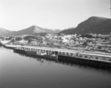 Title: View of Waterfront showing Prince Rupert, B.C. from Cold Storage to Grain Elevator in 1963 Part of: Wrathall Photo Finishing Ltd. fonds Level: Item Date: 1963 Physical Description: ["1 acetate negative : b&w ; 9.5 x 12 cm (referred to as copy 1)", "1 photograph : b&w ; 11 x 13 cm (referred to as copy 2)", "1 photograph : b&w ; 11 x 13 cm (referred to as copy 3)"] Description: Item consists of an aerial view of the Prince Rupert waterfront from a cold storage plant to the Canadian Government Grain Elevator. Mountains can be seen in the background. View details and larger image |