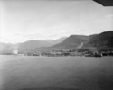 Title: Aerial View of the Prince Rupert Waterfront in 1963 Part of: Wrathall Photo Finishing Ltd. fonds Level: Item Date: 1963 Physical Description: ["1 acetate negative : b&w ; 9.5 x 12 cm (referred to as copy 1)", "1 photograph : b&w ; 11 x 13 cm (referred to as copy 2)", "1 photograph : b&w ; 11 x 13 cm (referred to as copy 3)"] Description: Item depicts an aerial view of the Prince Rupert waterfront from the Prince Rupert Drydock and Shipyard to the Shell Oil dock. The view includes Mount Oldfield and other mountains. Handwritten annotation on recto of copy 3 reads: "1963." View details and larger image |