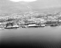 Title: Aerial View of the Waterfront, McBride Street to 2nd Street and the Courthouse at Prince Rupert, B.C. in 1963 Part of: Wrathall Photo Finishing Ltd. fonds Level: Item Date: 1963 Physical Description: ["1 acetate negative : b&w ; 9.5 x 12 cm", "2 photographs : b&w ; 11 x 13 cm", "1 photograph : b&w ; 10 x 13 cm", "1 photograph : b&w ; 21 x 26 cm"] Description: Item consists of an aerial view including the waterfront the Northland Dock, Navy Drill Hall, Crest Motor Hotel, Royal Canadian Legion building, the Prince Rupert Courthouse on Market Place, Pillsbury House and McBride Street to 2nd Street. Mount Hays can be seen in the background. View details |