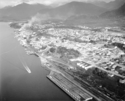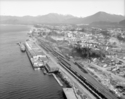 Title: Prince Rupert Waterfront from the Grain Elevator to the Drydock in 1963 Part of: Wrathall Photo Finishing Ltd. fonds Level: Item Date: 1963 Physical Description: ["1 acetate negative : b&w ; 9.5 x 12 cm (referred to as copy 1)", "1 photograph : b&w ; 11 x 13 cm (referred to as copy 2)", "1 photograph : b&w ; 11 x 13 cm (referred to as copy 3)", "1 photograph : b&w ; 21 x 26 cm (referred to as copy 4)"] Description: Item consists of an aerial of waterfront from the Ocean Dock to the Prince Rupert Drydock and Shipyard and a view of city from waterfront back to the mountain. Handwritten annotation on recto of copy 4 reads: "Ocean Side Cannery. Ocean Dock. C.N. Yard. Prince Rupert. 1963." Stamped annotation on » View details and larger image |