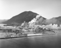 Title: Columbia Cellulose Pulp Mill at Watson Island, B.C. in 1967 Part of: Wrathall Photo Finishing Ltd. fonds Level: Item Date: 1967 Physical Description: ["1 acetate negative : b&w ; 9.5 x 12 cm (referred to as copy 1)", "1 photograph : b&w ; 21 x 26 cm (referred to as copy 2)"] Description: Item consists of an aerial view of the Columbia Cellulose Pulp Mill on Watson Island. Log booms can be seen floating in the waters around the Island. Handwritten annotation on recto of copy 2 reads: "Col. Cellulose Plant. Watson Isl. 1967." Stamped annotation on verso of copy 2 reads: "Photo by Jack » View details and larger image |