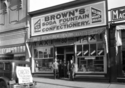 Title: Brown's Soda Fountain and Confectionary at the 500 Block on 3rd Avenue West at Prince Rupert, B.C. in 1934 Part of: Wrathall Photo Finishing Ltd. fonds Level: Item Date: 1934 Physical Description: ["1 nitrate negative : b&w ; 12 x 17 cm (referred to as copy 1)", "1 photograph : b&w ; 13 x 18 cm (referred to as copy 2)", "1 photograph : b&w ; 13 x 18 cm (referred to as copy 3)", "1 photograph : b&w ; 21 x 26 cm (referred to as copy 4)"] Description: Item consists of five people standing outside Brown's Soda Fountain and Confectionery and Taxi on 3rd Avenue West. Pictured second from the left is Joe Brown, third from the left is Mr. Goldbloom and fourth from the left is Mrs. Brown. A car with a sign advertising a circus can be seen on the left. » View details and larger image |