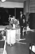 Title: Bowling Alley in the Basement of the Exchange Block at 3rd Avenue West at Prince Rupert, B.C. 1948 Part of: Wrathall Photo Finishing Ltd. fonds Level: Item Date: 1948 Physical Description: ["1 nitrate negative : b&w ; 9 x 14 cm (referred to as copy 1)", "1 photograph : b&w ; 21 x 26 cm (referred to as copy 2)", "1 photograph : b&w ; 9 x 15 cm (referred to as copy 3)"] Description: Item consists of seven people inside the bowling alley, one taking his turn, others watching, basement of the Exchange Building at 3rd Avenue West. Handwritten annotation on recto of copy 2 reads: "Bowling Alley. Basement Exchange Blk. 300. Blk - 3rd. Ave. 6th. St. 1948." Stamped annotation on verso » View details and larger image |