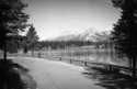 Title: Jasper, Alberta in 1946 Part of: Wrathall Photo Finishing Ltd. fonds Level: Item Date: 1946 Physical Description: 1 nitrate negative : b&w ; 9 x 13.5 cm Description: Item consists of a road next to a river. A man can be seen sitting on a wooden railing beside the road. Mountains can be seen background. View details and larger image |