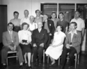 Title: Daily News Staff in 1951 Part of: Wrathall Photo Finishing Ltd. fonds Level: Item Date: 1951 Physical Description: ["1 nitrate negative : b&w ; 9.5 x 12 cm (referred to as copy 1)", "1 photograph : b&w ; 11 x 13 cm (referred to as copy 2)", "1 photograph : b&w ; 21 x 26 cm (referred to as copy 3)", "1 photograph : b&w ; 21 x 26 cm (referred to as copy 4)"] Description: Item consists of thirteen staff members inside at The Prince Rupert Daily News office. Handwritten annotation on recto of copy 2 reads: "Daily News Staff. 1951. 200 Blk. 3rd. Ave. W." Handwritten annotation on recto of copies 3 and 4 reads: "Staff - P.R. Daily News. 235 - 3rd. Ave. W. 1951." Stamped » View details and larger image |