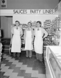 Title: Bill Sheardown & Bros. & Staff at the 300 Block of 3rd Avenue in Prince Rupert, B.C. in 1951 Part of: Wrathall Photo Finishing Ltd. fonds Level: Item Date: 1951 Physical Description: ["1 acetate negative : b&w ; 12 x 9.5 cm (referred to as copy 1)", "1 photograph : b&w ; 13 x 11 cm (referred to as copy 2)", "1 photograph : b&w ; 26 x 21 cm (referred to as copy 3)"] Description: Item consists of three employees standing inside Bill Sheardown and Bros. Super-Valu on the 300 block of 3rd Avenue West near shelves of canned goods. Handwritten annotation on recto of copy 3 reads: "Bill Sheardown. Super Valu. 1951." Stamped annotation on verso of copy 3 reads: "Photo by Jack » View details and larger image |