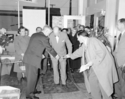 Title: Phil Lyons and Mayor George Hills Cutting Opening Ribbon at Tom Boy Grocery Store on 5th Avenue and McBride Street at Prince Rupert, B.C. in 1957 Part of: Wrathall Photo Finishing Ltd. fonds Level: Item Date: 1957 Physical Description: ["1 acetate negative : b&w ; 9.5 x 12 cm (referred to as copy 1)", "1 photograph : b&w ; 21 x 26 cm (referred to as copy 2)"] Description: Item consists of Mayor George Hills and proprietor Phil Lyons, cutting the ribbon inside of the new Tom Boy Grocery Store on 5th Avenue and McBride Street. Handwritten annotation on recto of copy 2 reads: "Phil. Lyons - Mayor Geo. Hills. Opening - Cutting the Ribbon. Tom Boy Store. 1957." Stamped » View details and larger image |