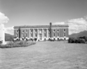 Title: Provincial Courthouse at Prince Rupert, B.C. in 1960 Part of: Wrathall Photo Finishing Ltd. fonds Level: Item Date: 1960 Physical Description: ["1 acetate negative : b&w ; 9.5 x 12 cm (referred to as copy 1)", "1 photograph : b&w ; 21 x 26 cm (referred to as copy 2)", "1 photograph : b&w ; 11 x 13 cm (referred to as copy 3)"] Description: Item consists of the exterior of the Prince Rupert Courthouse on Market Place with two people standing out front looking toward it. A view of lawn and edge of cenotaph can also be seen. Handwritten annotation on recto of copy 2 reads: "Prov. Courthouse. Pr. Rupert. 1960." Stamped annotation on verso » View details and larger image |