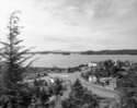 Title: Air View From Top of Elevator Showing C.N.R. Yard, Harbour, Town and Ocean Dock at Prince Rupert, B.C. in 1955 Part of: Wrathall Photo Finishing Ltd. fonds Level: Item Date: 1955 Physical Description: ["1 acetate negative : b&w ; 8 x 14 cm (referred to as copy 1)", "1 photograph : b&w ; 9 x 13 cm (referred to as copy 2)"] Description: Item consists of a view of the waterfront including downtown from the C.N.R. Yard to the Crest Hotel up to 4th Avenue West and East. Handwritten annotation on recto of copies 1 and 2 reads: "Prince Rupert BC Photo by Wrathalls [sic]." Handwritten annotation on recto of copy 2 reads: "From Elevator. » View details and larger image |