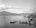 Title: View Along the Prince Rupert Harbour including Shell Oil, the Ocean Dock and the Tug Boat "Glendevon" in 1965 Part of: Wrathall Photo Finishing Ltd. fonds Level: Item Date: 1965 Physical Description: ["1 acetate negative : b&w ; 9.5 x 12 cm (referred to as copy 1)", "1 photograph : b&w ; 21 x 26 cm (referred to as copy 2)"] Description: Item consists of a view of the waterfront including the Shell Oil building, Ocean Dock, tugboat "Glendevon", Pillsbury House, the Royal Canadian Legion, Crest Hotel and Elizabeth Apartments. Handwritten annotation on recto of copy 2 reads: "Tug - Glendevon. Ocean Dock. Log Ship. Shell Oil Co. Crest » View details and larger image |