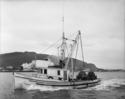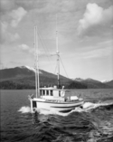 Title: Troller "Fairview II" at Prince Rupert, B.C. in 1957 Part of: Wrathall Photo Finishing Ltd. fonds Level: Item Date: 1957 Physical Description: ["1 acetate negative : b&w ; 9.5 x 12 cm (referred to as copy 1)", "1 photograph : b&w ; 21 x 26 cm (referred to as copy 2)"] Description: Item consists of the troller "Fairview II" in the Prince Rupert harbour. Mount Morse can be seen in the background. Stamped annotation on verso of copy 2 reads: "Photo by Jack Wrathall Prince Rupert, B. C." View details and larger image |