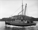 Title: Troller "Comfort 2," at Prince Rupert, B.C. in 1958 Part of: Wrathall Photo Finishing Ltd. fonds Level: Item Date: 1958 Physical Description: ["1 acetate negative : b&w ; 12 x 9.5 cm (referred to as copy 1)", "1 photograph : b&w ; 25 x 21 cm (referred to as copy 2)"] Description: Item consists of the troller "Comfort 2" in the Prince Rupert harbour. A man can be seen standing in the "Comfort 2's" cabin. Mount Morse can be seen in the background. Handwritten annotation on recto of copy 2 reads: "1958." Stamped annotation on verso of copy 2 reads: "Not to be Reproduced or » View details and larger image |