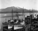 Title: Halibut Boats "Pauline," "Shrub," "Fisher" at a Wharf at Prince Rupert, B.C. in 1920 Part of: Wrathall Photo Finishing Ltd. fonds Level: Item Date: 1920 Physical Description: ["1 nitrate negative : b&w ; 9.5 x 12 cm (referred to as copy 1)", "1 photograph : b&w ; 21 x 26 cm (referred to as copy 2)"] Description: Item consists of the halibut boats "Pauline," "Shrub," "Fisher," "PRT No. 1" and others docked at a wharf. Mount Morse can be seen in the background. Handwritten annotation on recto of copy 2 reads: "1920 - Pauline - Shrub - Fisher. Halibut Boats." Stamped annotation on verso of copy 2 reads: "Photo » View details and larger image |