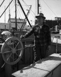 Title: Ernie Hill from Haida Gwaii on a Seiner at Prince Rupert, B.C. in 1957 Part of: Wrathall Photo Finishing Ltd. fonds Level: Item Date: 1957 Physical Description: ["1 acetate negative : b&w ; 12 x 9.5 cm (referred to as copy 1)", "1 photograph : b&w ; 26 x 21 cm (referred to as copy 2)", "1 photograph : b&w ; 12 x 7 cm (referred to as copy 3)", "1 photograph : b&w ; 12 x 7 cm (referred to as copy 4)"] Description: Item consists of Ernie Hill from Haida Gwaii at the wheel of a seiner. Handwritten annotation on recto of copy 2 reads: "Seiner. 1957." Stamped annotation on verso of copy 2 reads: "Photo by Jack Wrathall Prince Rupert, B. C." Handwritten annotation verso of copies 3 and 4 reads: "Ernie Hill 1952. » View details and larger image |