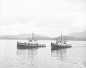 Title: Tug Boats "Kwatna" and "F.H. Phippen" at Prince Rupert, B.C. in 1959 Part of: Wrathall Photo Finishing Ltd. fonds Level: Item Date: 1959 Physical Description: ["1 acetate negative : b&w ; 9.5 x 12 cm (referred to as copy 1)", "1 photograph : b&w ; 21 x 26 cm (referred to as copy 2)"] Description: Item consists of two Armour Salvage tug boats in Prince Rupert Harbour "Kwatna" and "F. H. Phippen." Handwritten annotation on recto of copy 2 reads: "Prince Rupert, B.C. 1959." Stamped annotation on verso of copy 2 reads: "Photo by Jack Wrathall Prince Rupert, B. C." View details and larger image |
