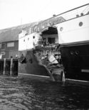 Title: SS "Princess Kathleen" at Prince Rupert, B.C. After Hitting the SS "Prince Rupert" on September 1, 1951 Part of: Wrathall Photo Finishing Ltd. fonds Level: Item Date: September 1, 1951 Physical Description: ["1 nitrate negative : b&w ; 12 x 9.5 cm (referred to as copy 1)", "1 photograph : b&w ; 26 x 21 cm (referred to as copy 2)"] Description: Item consists of the S.S. "Princess Kathleen" showing large hole in bow after being hit by the S.S. "Prince Rupert" people on dock behind. Handwritten annotation on recto of copy 2 reads: "S.S. Kathern [sic] Hit by S.S. Prince Rupert. Sept. 1. 1951." Stamped annotation on verso of copy 2 reads: » View details and larger image |