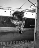 Title: SS "Princess Kathleen" at Prince Rupert, B.C. After Hitting the SS "Prince Rupert" on September 1, 1951 Part of: Wrathall Photo Finishing Ltd. fonds Level: Item Date: 1951 Physical Description: ["1 nitrate negative: b&w; 12 x 9.5 cm (referred to as copy 1)", "1 photograph : b&w ; 25.5 x 21 cm (referred to as copy 2)", "1 photograph : b&w ; 25.5 x 21 cm (referred to as copy 3)"] Description: Item consists of SS "Princess Kathleen" with large hole in the bow, tied up at the wharf in Prince Rupert. The "Princess Kathleen" had collided with the SS "Prince Rupert." Handwritten annotation on recto of copy 3 reads: "S.S. Kathern [sic]. Hit by S.S. Prince Rupert. In P. Rupert Drydock." Stamped » View details and larger image |
