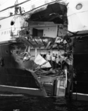 Title: SS "Princess Kathleen" at Prince Rupert, B.C. After Being Hit by the SS "Prince Rupert" on September 1, 1951 Part of: Wrathall Photo Finishing Ltd. fonds Level: Item Date: September 1, 1951 Physical Description: ["1 nitrate negative : b&w ; 12 x 9.5 cm (referred to as copy 1)", "1 photograph : b&w ; 26 x 21 cm (referred to as copy 2)"] Description: Item consists of the SS "Princess Kathleen" with large hole in the bow after being hit by the SS "Prince Rupert" Five men can be seen standing and looking out the hole. Handwritten annotation on recto of copy 2 reads: "S.S. Kathern [sic]. Hit by S.S. Prince Rupert. Sept. 1st. 1951." Stamped » View details and larger image |
