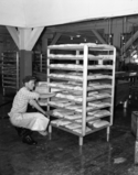 Title: Prince Rupert Fishermen's Co-op Plant at Fairview at Prince Rupert, B.C. in 1960 Part of: Wrathall Photo Finishing Ltd. fonds Level: Item Date: 1960 Physical Description: ["1 acetate negative : b&w ; 12 x 9.5 cm (referred to as copy 1)", "1 photograph : b&w ; 21 x 26 cm (referred to as copy 2)"] Description: Item consists of a worker with trays of fish meat inside the Prince Rupert Fishermen's Co-op Plant at Fairview. Handwritten annotation on recto of copy 2 reads: "Pr. Rupert Fishermen's Co-op Fish Plant. Fairview. 1960." Stamped annotation on verso of copy 2 reads: "Photo by Jack Wrathall Prince » View details and larger image |