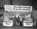 Title: Prince Rupert Fishermen's Co-op Association Display Booth at Civic Centre at Prince Rupert, B.C. in 1960 Part of: Wrathall Photo Finishing Ltd. fonds Level: Item Date: 1960 Physical Description: ["1 acetate negative : b&w ; 9.5 x 12 cm (referred to as copy 1)", "1 photograph : b&w ; 21 x 26 cm (referred to as copy 2)"] Description: Item consists of four men in front of the Prince Rupert Fishermen's Co-op Plant display at the Prince Rupert Civic Centre. The display celebrates the 50 year jubilee of Prince Rupert. Handwritten annotation on recto of copy 2 reads; "Display Booth. Pr. Rupert Fishermen's Co-op. Civic Centre. 2nd. » View details and larger image |