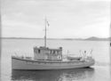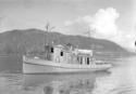 Title: Government Boat "Ta Oint" in a Harbour in 1935 Part of: Wrathall Photo Finishing Ltd. fonds Level: Item Date: 1935 Physical Description: ["1 nitrate negative : b&w ; 10 x 15 cm (referred to as copy 1)", "1 photograph : b&w ; 21 x 26 cm (referred to as copy 2)"] Description: Item consists of the government boat "Ta Oint" in a harbour (the Prince Rupert harbour?). Handwritten annotation on recto of copy 2 reads: "1935." Stamped annotation on verso of copy 2 reads: "Photo by Jack Wrathall Prince Rupert, B. C." View details and larger image |